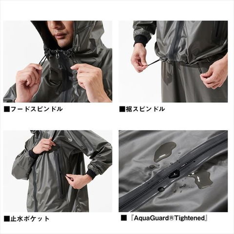 汚れの付きにくさと透湿性を兼ね備えたレインウェア。汚れや海水が付いても、水でさっと洗えば落ちやすい素材を開発。表側に防水層をもってくることで、水が生地に染み込まず、ドライで乾きやすい。PU、PVC等の船レインと比べ、透湿性があるため、衣服内が蒸れにくく、気温の高い時期でも快適に着用可能。船レインと比べ、シルエットをスリムにすることができ、動きやすい。フロントファスナーには、YKKとの開発で実現した「AquaGuard Tightened」をいち早く搭載。特殊な構造により、従来の止水ファスナーより耐水性が大幅に向上。それにより、ファスナー下の持ち出し(生地)をなくすことができ、よりしなやかに、軽量化に成功。袖口は防水性を向上させながら、袖口面ファスナーをなくした1重袖仕様で糸等の引っ掛かりを軽減。 ★ サイズ:L