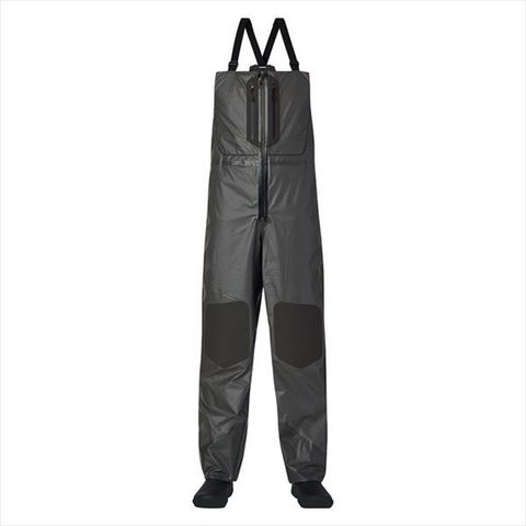 汚れの付きにくさと透湿性を兼ね備えたレインビブ。汚れや海水が付いても、水でさっと洗えば落ちやすい素材を開発。表側に防水層をもってくることで、水が生地に染み込まず、ドライで乾きやすい。PU,PVC等の船レインと比べ、透湿性があるため、衣服内が蒸れにくく、気温の高い時期でも快適に着用可能。船レインと比べ、シルエットをスリムにすることができ、動きやすい。擦れやすい膝部、尻部は二重に補強。フロントには上下から開閉できる止水ファスナーを採用。単体でも使用しやすいよう、胸ポケットを搭載。※透湿防水層を最外面に配した特殊構造のため、過度の擦れに弱い性質があります。製品によっては色ムラが出る可能性があります。※特殊な防水加工を施しているため、撥水スプレーは使用しないでください。 ★ サイズ:2XL