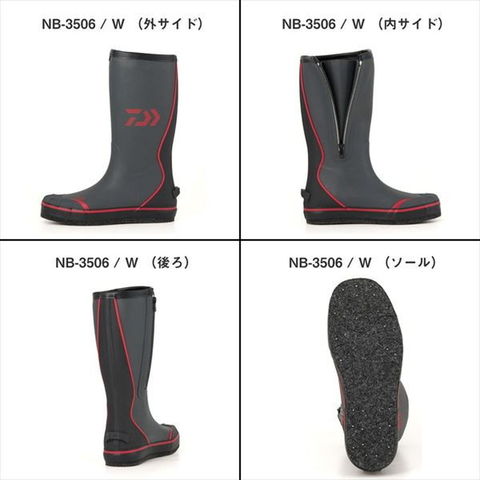 機能性と快適性を両立した高性能フィッシングブーツ誕生!あらゆるフィッシングシーンに対応する、ダイワの本気ブーツ。◆新しく採用した軽量・高柔軟性の特殊発泡ゴムを本体素材に採用。高次元の柔らかさと伸縮性を実現。前モデル比で約20%の軽量化。突っ張り感がなく足にしっかりフィットし、長時間の使用でも快適な履き心地が続く。 ◆サイドファスナー仕様で着脱もスムーズ ◆ダイワ独自の足型設計により、フィット感・機動性・履き心地をさらに追求 ◆ブーツのかかとに設けられた「キックオフ」で手を使わずに素早く脱げる ◆内部にはノンスリップインソールを採用し、足ズレを防止 ●NB-3506 / W 高い屈曲性とグリップ性能を備えた「スーパーキュービックセンサーソール」を採用し、多様なフィールドに対応。サイズ:M(25.5)