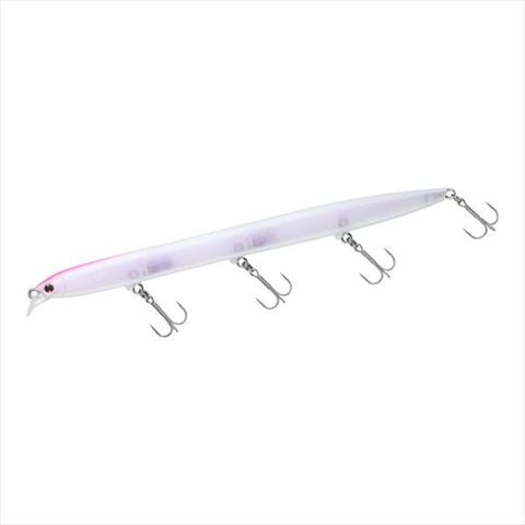 小沼正弥監修。密かに爆れ。バチ、サヨリ、シラス、激スレパターン対応、極細シルエットの水面直下攻略型ぶっ飛びシャローランナー。細身・小型ベイトに偏食している時、激スレ時に最適。バチ、サヨリ、シラスはもとより、イワシや稚アユ等の小型ベイトパターンにベストマッチな極スリムシルエット。高レスポンス&スレに強いタイトウォブンロール+テールスライドアクションで、低速~高速まで全てのリトリーブに対応。ロッドポジションとリトリーブ速度の組み合わせで水面直下~約30cmが有効レンジ。風雨等でI字系スリムプラグが太刀打ちできない状況でも、一枚下のレンジでしっかりアピールできる。極細ボディながら磁着重心移動を前後にダブルで搭載し、「スリムミノーは飛ばない」イメージをくつがえす快適なキャスタビリティと立ち上がり性能を両立。 ★ 全長:150mm