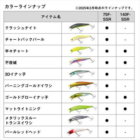 イナッコを完コピした水面引き波系ウエイクベイト「クロスウエイクシリーズ」のスモールベイト対応75サイズに、人気4カラーを追加!F-SSRは、ロッドポジションとリトリーブスピードとのコンビネーションにより水面~最大深度約30cmのレンジをトレース可能。リトリーブはドリフト~ミディアムがおすすめ。特に超デッドスローにおける引き波の出方は、まさに弱ったボラそのもの。75mmはスモールベイト対応。 ★ 全長:75mm