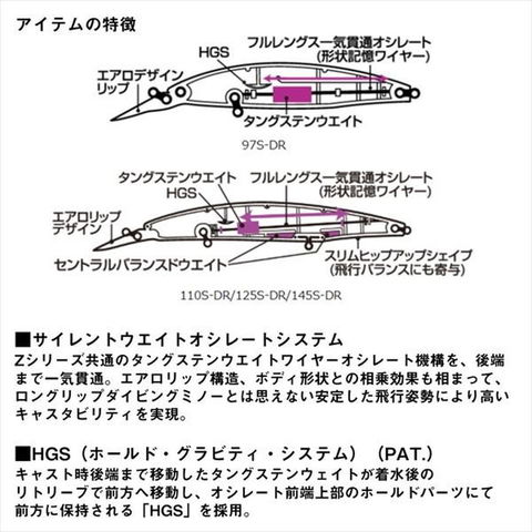 小沼正弥完全監修。テッパンだけでは芸が無い、誰もが苦手にしている堤防、磯等における中層と足元を攻められるぶっ飛びサーチシンキングダイバー。キャスタビリティ・レンジキープ性能を追求したスローシンキング設定ながら、多用するスロー~ミディアムでのレスポンスを徹底追求。小沼の卓越した経験とフィールドテストを繰り返した末にたどり着いた、こだわりの「釣れるハイピッチタイトウォブンロールアクション」が持ち味。「タダ巻きのスローリトリーブ」でもしっかりした引き心地と強烈なフラッシング&波動を発生。また、流れの変化で自動的に生まれるイレギュラースライドアクションが食わせの間を与え、特別なロッドアクションの入力は不要。 ★ 全長:75mm