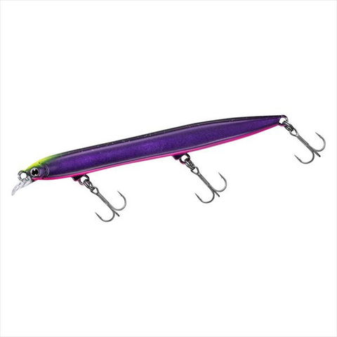 小沼正弥監修。密かに爆れ。バチ、サヨリ、シラス、激スレパターン対応、極細シルエットの水面直下攻略型ぶっ飛びシャローランナー。細身・小型ベイトに偏食している時、激スレ時に最適。バチ、サヨリ、シラスはもとより、イワシや稚アユ等の小型ベイトパターンにベストマッチな極スリムシルエット。高レスポンス&スレに強いタイトウォブンロール+テールスライドアクションで、低速~高速まで全てのリトリーブに対応。ロッドポジションとリトリーブ速度の組み合わせで水面直下~約30cmが有効レンジ。風雨等でI字系スリムプラグが太刀打ちできない状況でも、一枚下のレンジでしっかりアピールできる。極細ボディながら磁着重心移動を前後にダブルで搭載し、「スリムミノーは飛ばない」イメージをくつがえす快適なキャスタビリティと立ち上がり性能を両立。