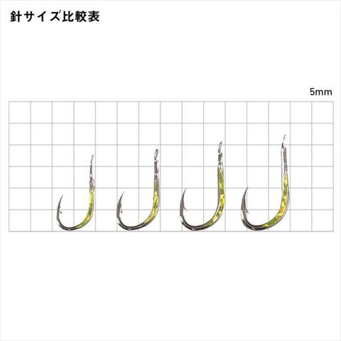 DAIWA落とし込みシリーズで使用の独自落とし込み専用針のバラ売り版(Vivid Flash)が遂に登場。DAIWA落とし込みシリーズで使用している針の中で剛鋭イサキ、剛鋭くわせの2種に独自針がある。自作の方や、カスタム用にバラ針小袋としてリリース。当然、針の胴打ち部分にはVivid Flash(ホロシール直貼り)仕様で、エサ掛かりが向上する仕様に仕上げている。ホロシールはシルバー、ゴールドの2パターンシルバーは定番かつ、特にイワシベイト時に有効。ゴールドも定番だが、特にアジベイト時に有効。号数:9
