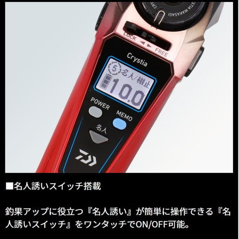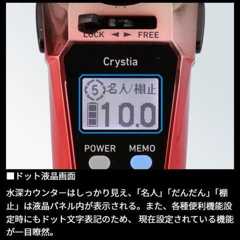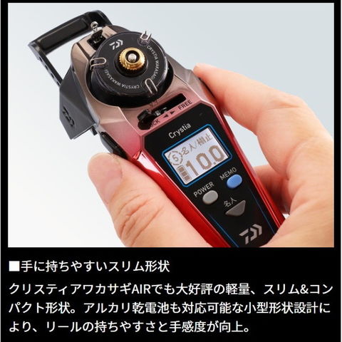 DAIWA CONNECTED 対応ワカサギリール。スマートフォンと繋がることで「釣行中のLIVE水深画面確認」「リール簡単設定」「My History/My Dataでの釣行後の振り返り」などでワカサギリール新たな価値と機能の進化を提案するワカサギコネクテッドリール。ドット液晶+バックライトの採用により、CRS/CRS+シリーズより見やすく、現在設定している機能を文字化することで、ひと目でわかるようになった。釣果に繋がる各種便利機能を踏襲。重量(g):95