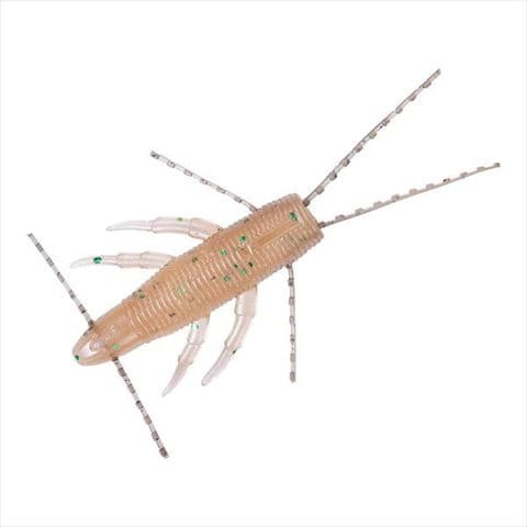 タフコンディションを乗り切る喰わせのエビ系高比重ワーム!タフ化するフィールドで魚を捻りだす最後の切り札として開発した高比重ノーシンカーワーム。ラバーレッグとワームレッグがフォール時にそれぞれ異なる波動でアピールし、エビ喰い系のバスに特に威力を発揮する。オフセットフックでの使用を前提として考え、スリットもフックセットしやすく調整されている。数釣りも得意でバスフィッシング初心者にもオススメしやすいワームである。全長:2.4inch