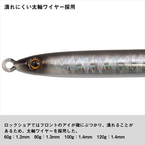 狙いのポイントまで一直線!飛ばして誘う、落として喰わせる、 ハイアピールジグ!アンバージグは、過酷なロックショアシーンでの使用を前提に設計された、実戦仕様のメタルジグである。左右非対称の肉厚ボディが、空気抵抗を最小限に抑え、抜群の飛距離と安定した飛行姿勢を実現。向かい風にも強く、沖のポイントをしっかりと捉えることができる。重心はわずかにフロント寄り。しゃくった瞬間、大きく跳ね上がるようなアクションで広範囲にアピールし、肉厚ボディにより滞空時間を短く保ちつつ、テンポよくハイピッチな誘いが可能。フォールでは、水平姿勢から一気に高速バックスライドさせ、遊泳力の高い青物に対して強烈なアピールをし、スイッチを入れる。全長:133mm
