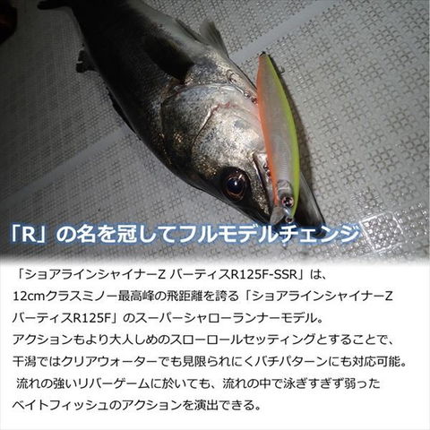 新たなる飛びの伝説を引き継いだSLZバーティスRに、SSR(スーパーシャロー)モデルが登場!飛びの伝説を引き継いだスーパーシャローランナー「SLZバーティス120F-SSR」が、「R」の名を冠してフルモデルチェンジ!さらに、遠くのシャロ―を攻略したい、12cmクラスでは届かない、アピールが弱い、ベイトが大きい、そんな時に最適な140サイズも登場。干潟、河川の岸際など水深の浅いステージや、シーバスの活性が高く浮き気味のときに効果的な最大50cmダイブ仕様。アクションもより大人しめのスローロールセッティングとすることで、干潟ではクリアウォーターでも見限られにくバチパターンにも対応可能。 流れの強いリバーゲームに於いても、流れの中で泳ぎすぎず弱ったベイトフィッシュのアクションを演出できる。全長(mm):125