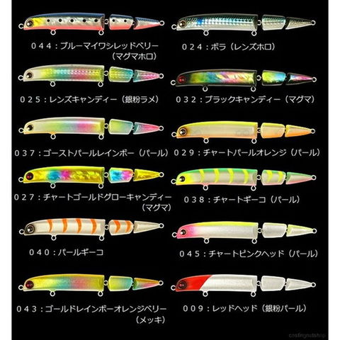 ハイプレッシャーなポイントでスレきったシーバスや、偏食してルアーに見向きもしないシーバスなどに威力を発揮。ジョイントとは思えない、計算された飛行姿勢により抜群の飛距離を実現。リングで連結されたボディが、水流の変化に反応して上下左右、捻りなど、自由自在に動くことで複雑なトリッキー波動を生み出します。ジョイント特有の強いアピール力は、まさにランカー狙いの最終兵器! ※掲載している商品の画像は代表画像を表示しています。また実物と色が違って見える場合があります。あらかじめご了承下さい。