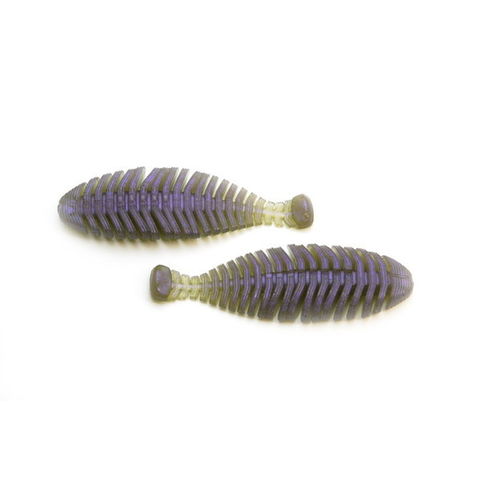フラットボディのソフトベイトが有効である要素のひとつ「強い水押し」とそれに伴う「自発的なイレギュラースライドアクション」。ヒラタイラーは、それらに複雑さと乱水流による艶めかしさをプラスするために、深めのスリットを入れたブロック状の蛇腹ボディに設計。ボディに掛かるウォータープレッシャーの強弱によって全方位にうごめく艶めかしさをもたらしています。また、深めのスリットによってボディ全体でしっかりと水をグリップするため、常に複雑な波動を発しステイ時においても存在をアピール。従来のフラットワームでは生み出しにくかった繊細なロッドワークに対しても、くねるような柔らかな反応で魚を魅了します。スリットによる柔軟なボディは、フラットワームの欠点であるフッキングの悪さの改善にも大きく貢献しています。全長:3.7インチ