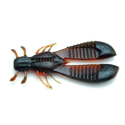 今までに類を見ないほど分厚く重い爪が生む強烈なパンチをしなやかで幅広いアームが逃さず受け止め団扇のごとく天地左右遠くまで水を弾き飛ばす。それにより生み出される強波動は従来のワームを遥かに超える集魚力を発揮。しかし、ただそれだけでは使いどころの限られた扱い難い物になってしまうため、軽いアクションでも敏感に動くサイドレッグ各種やアクションの余韻を生む浮力と甲殻類ライクな微波動を生む腹部の薄板リブなど随所にギミックパーツを盛り込む事でフォールやズル引き、スイミングやステイに至るまでいついかなる時もバスを誘い続け、緩急の効いたアクション変化でバイトトリガーにスイッチを入れるワームに仕上げています。#REF!