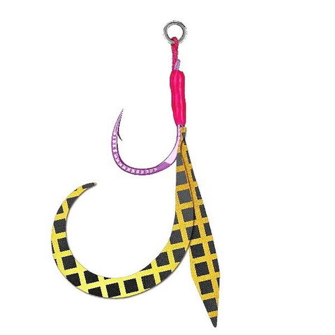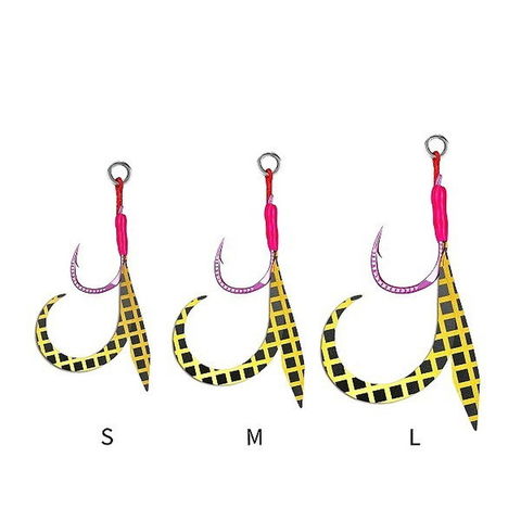 ネクタイはフォールと巻き上げ時に絶大な効果を発揮し、魚の食い気を増幅させバイトを誘発。。装飾されたフックは、乱反射を起こし派手にアピール。嘗てない新軸のアシストフック実現した。