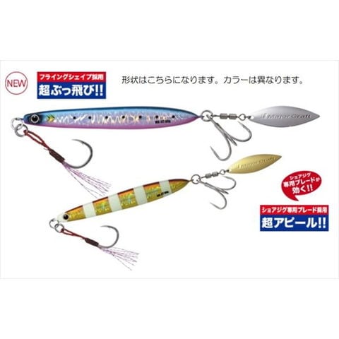 「巻くだけジグ」登場!イワシなどの小魚を追い回すターゲットには、ジャークやスライドなどのアクションでヒットに持ち込むパターンが一般的ですが、マイクロベイトなどの動きの遅いベイトに着いたターゲットには全く通用しない場合があります。そんな時に最も有効なのがブレード付きにジグになります。あえてジグの動きを制御し、ブレードのフラッシングと微波動だけでヒットに持ち込める「巻くだけジグ」でマイクロベイトパターンを攻略してください。サバやサゴシ・サワラといったリアから食いつく魚や、根魚・マダイなどの鯛ラバで釣れる魚にも効果抜群!ターゲットを選ばない巻くだけジグ「マキジグ」でショアジギングからスーパーライトジギングまで楽しめるでしょう。MAKI JIG JETは、リア重心が驚異の飛距離と素早いフォールで、チャンスを逃がしません。ジグに対して垂直なアイでキャスト&フォール時にフックとブレードを一体化、最大級の飛距離を叩き出します。ロングボディがサワラ・サゴシ狙いにおススメです。※掲載している商品の画像は代表画像を表示しています。また実物と色が違って見える場合があります。あらかじめご了承下さい。