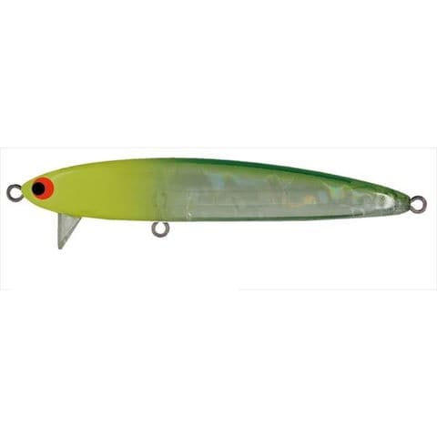 バチ・ハク・エビ・サヨリなどのマイクロベイトパターンをはじめ、季節の変わり目などに良く起こる「居るのに食わない」現象の元で効果を発揮する特殊ミノーの登場です。リトリーブでは小さく震える微振動アクションの、いわゆる「泳がない」タイプのミノープラグとなります。水面の状態や、ロッド保持位置、リーリングコントロールにより、水面引き波から、水面下皮一枚の浅いスイムレンジ設定で、ユックリ静かな直線引きを可能としています。時折、リトリーブスピードに変化を与えたり、軽いトゥイッチでのダートなど、積極的なアピール効果も備えています。 ★ size:88mm/9g type:floating Hook:#6×2 ring:#3 range:0-5cm ※実物と色が違って見える場合があります。あらかじめご了承下さい。