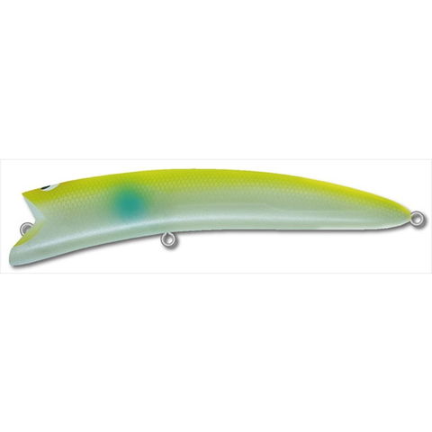 まるで何かを威嚇するかの如く、大きく開けた特徴的な顎と、湾曲した高浮力ボディにより生み出される、スロームーブ&ワイドウォブリングアクションの激アピール型シャローランナーの登場です。分類通り、デッドスロー~スローリトリーブで水深20㎝-60cm間のレンジ攻略を得意します。またリトリーブのみならず、『チョンチョンと水中でボディを左右交互に倒す様なイメージでのロッド操作』や、リトリーブ中に『強く小さく鋭く』リーリングに変化を加える事でイレギュラーアクションを可能としています。 ★ size:150mm/43g(本体のみ) type:floating Hook:#1×2 ring:#5 range:20-60cm
