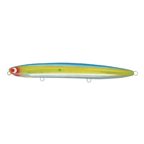 重量級後方重心のスリムボディによる抜群の遠投性と、バックスライドフォールによる速やかな沈降+ラインテンションによりフラッシングの強度もコントロール可能なヘビーウエイトジグミノータイプ。 リトリーブを開始すれば素早く浮き上がり、艶めかしいスラロームスイムを披露。また細身のジグミノーとしては珍しく、ロッドワークへのレスポンスに優れているため、リトリーブ中にトゥイッチを加える事で左右へのスライドやヒラウチも可能とします。 単調になりがちなジグミノーには真似し難い能力でサーフのフラットフィッシュから外洋のシーバス・青物と幅広く活躍します。全長:125mm