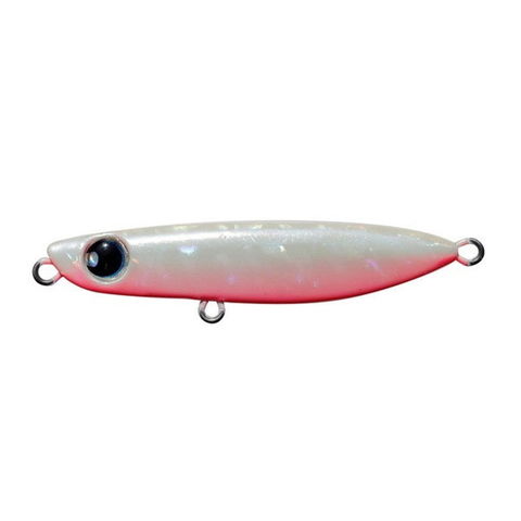 ネーミングから予想される通り、オフベイトと対となるメタルジグ。「スイッチオンの生命感あふれるベイト」を演出、ヤル気あるヒラメの本能に訴えバイトに持ち込みます。躍動的なアクションを生み出す推奨リトリーブスピードは、ミディアムからミディアムファスト。水を掴むボディー形状は、流れが速い場所や波風が強い状況下でもウエイトを上げる事なくレンジキープを可能としました。また同時に、流され過ぎずイメージ通りのトレースラインを引いてくる事も可能です。こういったシチュエーションの場合ウエイトを上げて対応する事も一つの方法ですが、その場合どうしてもアクション自体が重くなってしまいます。オンベイトは水噛みだけでこれらを可能とした事で、アグレッシブなキレのあるアクションのまま魚にアプローチすることが出来ます。リア重心はもとより、キャスト時にボディーが後方へ返るタイミングをスムースにする事で飛行姿勢が安定。極限まで風の影響を受けにくく、多くのアングラーを満足させられる飛距離を実現しました。