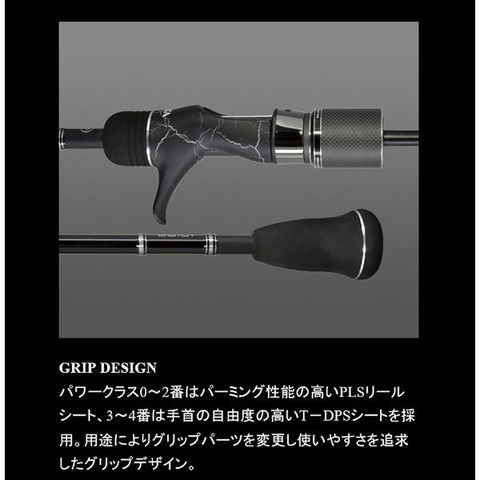 パワークラス0~2番はパーミング性能の高いPLSリールシート、3~4番は手首の自由度の高いT-DPSシートを採用。用途によりグリップパーツを変更し使いやすさを追求したグリップデザイン。