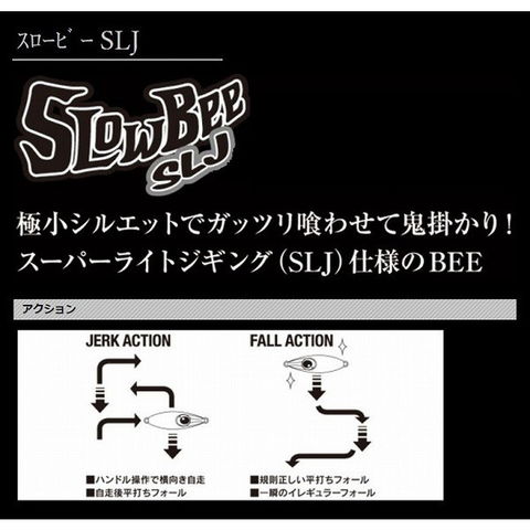 重さ:40g 全長:5.3cm 極小シルエットでガッツリ食わせて鬼掛かり!スーパーライトジギング(SLJ)仕様のBEE!ショアスロー専用として発売されているSLOW BEEのフッキング率をアップさせオフショアのスーパーライトジギングにも対応できるようにチューニングしたモデル。80gを新設計し上下Wフックで魚が触れた瞬間に掛けるまさに鬼掛かりのシステムとなっている。※掲載している商品の画像は代表画像を表示しています。また実物と色が違って見える場合があります。あらかじめご了承下さい。
