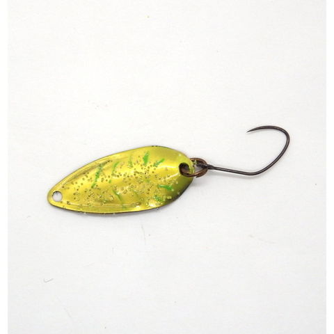 丸湖スプーンでは小型スプーンとしては中心的なマルチに使い勝手の優れたスプーンになります。小型ながらデスタンス性とロット角度に寄ってアピールを変えながらお楽しみいただけます。ラインとロッドを平行にしてリトリーブをしますと、ウォブリングとロールを織り混ぜたアクションでトラウトにアピール。ロッドを高目でリトリーブしますと、ロールのアピールが強目にアピールを行います。初心者からエキスパートまで正にマルチ仕様なスプーンになっています。 ★ 重量(g):1.2