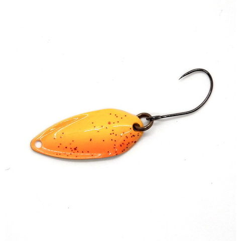 松湖スプーンは、全て水受けを最大限生かした構造と後方重心に寄り水受けのラジアル性と遠投性ディスタンス性に特化して居る製品に成っております。表層用では有りますが0.7gではリトリーブスピードが遅く途中で見切られる場合は、0.9 gコンペティションで少し早目のリトリーブでトラウトの活性に合わせて使い分けを是非お試し下さい。また中層の活性の高いトラウトにもストップ&ゴーなどからのレンジキープで追尾からの少々のレンジアップ等でバイトに繋げる釣り方もお試し下さい。 ★ 重量(g):0.9
