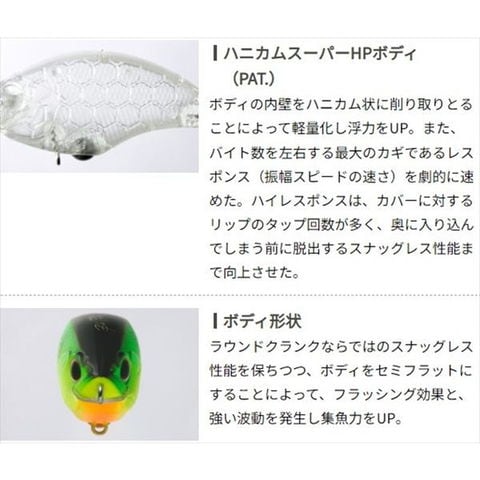 ブリッツはあらゆるシャローエリアを電光石火のごとく打ちまくる超攻撃型シャロークランク。一見スタンダードなルックスに見えて、内部にこだわり、釣るための性能を数世代進化させている。その性能はワンキャストすれば分かるほど。もちろん釣果もめざましく、発表直後から多くの実績を積み重ねている。狙った性能は、根こそぎバイトに持ち込むほどの圧倒的なアクションと、あらゆる基本性能を進化させること。まず、カバーに当っても弾かれて軌道が大きくそれることのない安定したなスイミングのためにメインウエイトを固定。重心移動がないことによって懸念されるキャスタビリティも、低重心ウエイト設計と空気抵抗を計算したボディデザインによって、狙ったスポットにキッチリ落せる性能を実現した。また、ラウンドクランクのメリットであるスナッグレス性能と、フラットサイド的要素を盛り込んだ、独自のセミフラットボディによってアピール力も倍増した。