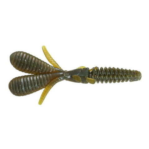 テキサスリグやフリーリグとの相性が良く、着底時やロッドでのアクション時に、ボリューミーな 触角と、くびれたボディの相乗効果でアクションに大きな余韻を生み、バスのバイトを誘います。 また、頭部に設けた小さな2対の脚は、水流を受けて小刻みに動く事で、より生命感のある複雑な アクションを生み出します。 ★ 全長:4.2インチ