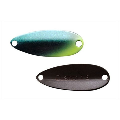 超ハイプレッシャー対応!ロールアクション系マイクロスプーン。ちびクワトロスプーンはリトリーブ時にスプーンの先端が左右にブレることなく、綺麗なロールアクションを発生します。 スモールサイズのシルエットとロール主体の喰わせ系アクションにより、スレた魚を狙って釣る事ができ、ハイプレッシャー時に抜群の威力を発揮するスプーンです。 細かく分かれたウェイトバリエーションにより、表層から中層までがターゲットレンジとなります。Weight:0.8g Length:22mm Hook Size:e-hook#12 Ring Size:#0