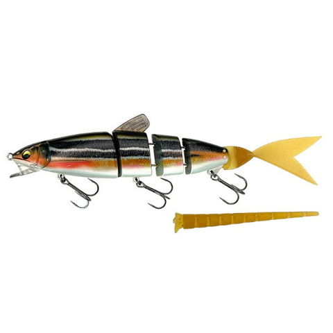 ジャバロンの柔らかくなめらかな生命感にハードベイトならではの力強い水押しとトリプルフックによる高いフッキング率がプラスされたジャバロンハード。復刻以来、十数年前にできたルアーとは思えない釣果を叩き出し、一躍、スタンダードスイミングワームとして返り咲いたジャバロン。しかしジャバロンにも弱点があります。それはワームがゆえの集魚力とシングルフックのステルス効果と比例するフッキング率。オープンウォーターやカレントの中でジャバロン唯一のアクションでハードベイト並みの強い集魚力とキスバイトさえ掛けることができたら…。この悩みに対する飽くなき探究心で生み出されたのがジャパロンハードです。テールもプラスチックからエラストマーに変更し、スネークテールとジャバロンテールの2種類が付属しています。全長:215mm(Javallon Tail) 245mm(Snake Tail)