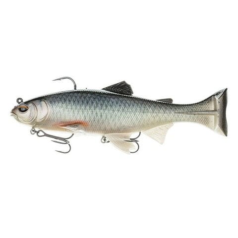 究極のデッドスローリトリーブでも振り子のようにしっかりと左右に尾を振り、強力な水押し集魚パワーを発揮する、動きも見た目も超リアルなフローティングスイムベイトです。ロングキャストでのデッドスローリトリーブはもちろん、サイトフィッシングでボトムに置いて「飛ばし」(鋭いジャーク)を使うことで、並のビッグベイトには反応しないクレバーなビッグバスでも反応させることができます。