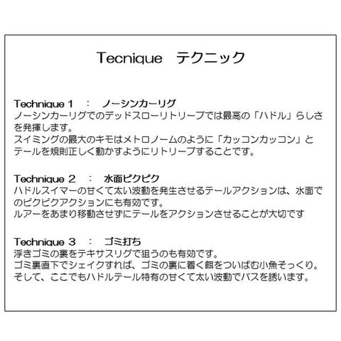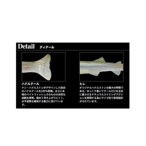 スイムベイトの最終兵器USAハドルストンデラックスのDNAを受け継ぎ、日本のフィールドで徹底的に鍛えられたスーパースイミングソフトベイト「ハドルスイマー」●アメリカでの大ブレイクと共に、日本でもビッグバスの最終兵器としてビッグバスハンター達がひた隠しにしてきた驚異のナチュラルスイムベイト 「ハドルストン」。ケン・ハドルストンがデザインした独自の「ハドルテール」は、今までの常識を覆す、まさに本物のベイトフィッシュそのものの自然な波動を再現することに成功。ケン・ハドルストン氏監修のもと、ハドルスイマーにはハドルテール独自の威力を100%移植。そのハドルストンが持つ圧倒的な破壊の遺伝子を正統に受け継ぎ、日本のフィールドで徹底的に鍛えられ、独自の進化を遂げたニュータイプスイムベイトが誕生しました。全長:4インチ