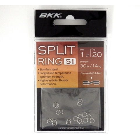 BKKスプリットリング-51は、小型から大型ターゲットまでをも想定した最も基本的なSplitRingです。エッジに精密化学研磨を施し、ラインへのダメージを軽減させています。サイズ:#1