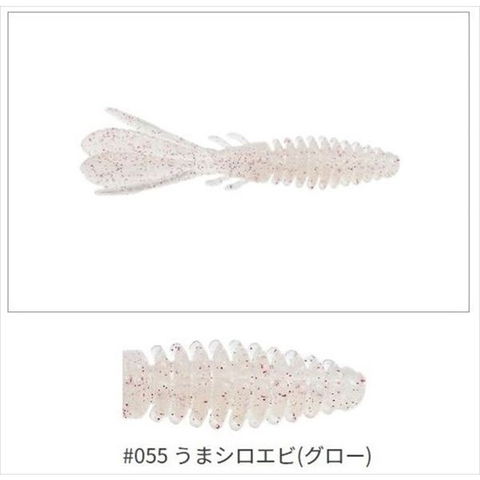 ハタ・カサゴ等のロックフィッシュが常食している甲殻類をイメージさせるデザイン。凹凸のある複雑なボディ表面が水をつかみアピールするとともに、障害物をかわしやすく、フッキングしやすい形状になっています。ボリュームの異なる触角は各々が違う波動を発します。頭部についた4本の脚は、フォール時に水を噛みながら極小バイブレーションで魚を誘います。 ★ カラー:#055うまシロエビ(グロー) サイズ:2.6インチ 7本入り ※実物と色が違って見える場合があります。あらかじめご了承下さい。