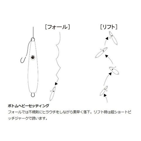 メタルジグゲームにおけるバイトの多くがフォール中に発生することに着目し、フォール姿勢を徹底的に研究。数多くの試作を経て、「釣れる」水中姿勢の実現に成功しました。一方、ワンピッチジャーク、リフト&フォール、高速巻き等、様々なアクション及びリトリーブスピードにも破綻することなく対応。さらに、アクション特性の変更が可能なリバーシブルデザインを旧モデルから継承したことで、あらゆるコンディションにアジャストすることができます。全長:ボディ約210mm