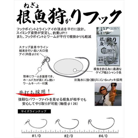 ルーディーズ ワームフック 根魚狩リフック #2/0