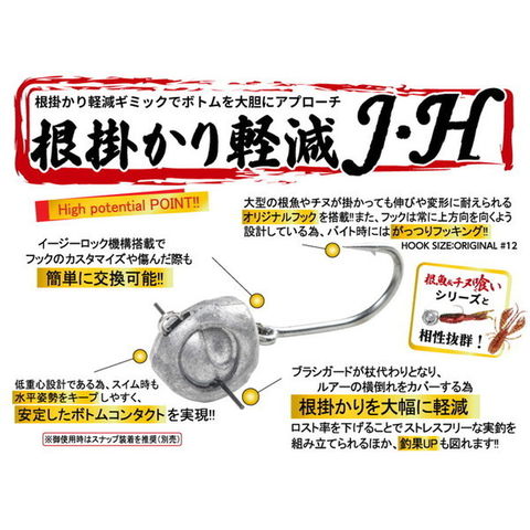 ヘッド部のブラシガードが杖代わりとなり、横倒れをカバーすることで厄介な根掛かりを大幅軽減!フックもイージーロック機構搭載で簡単にカスタムや交換が可能!ボトムを恐れることなく攻めることが出来る進化系ジグヘッドとなっています。ワームには「根魚&チヌ喰い」シリーズを推奨します。重量(g):7