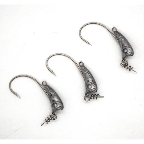 ターゲットに口を使わせるよう、フロントからアンダーにかけ、ザグリ加工でフォールスピードを可能な限り抑制!! また、フッキング率UPの為、スイミング時には水平姿勢キープでフォール&スイミングの釣り共にカバー。 ワームキーパー付属で、ワームのズレも軽減できる専用ジグヘッド。重量(g):5