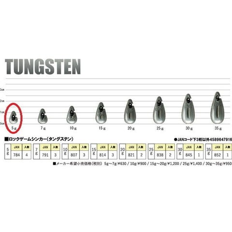 ロックパイプは鉛素材のロックゲームシンカーとも互換性がありウェイトだけではなく鉛とタングステンの併用が可能です。重量(g):5