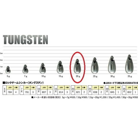 ロックパイプは鉛素材のロックゲームシンカーとも互換性がありウェイトだけではなく鉛とタングステンの併用が可能です。重量(g):20