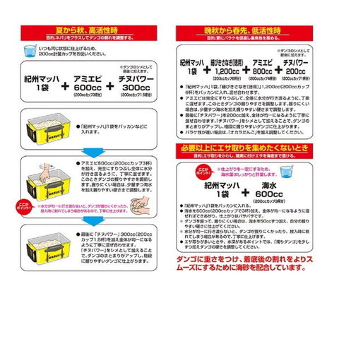 海水を加えるだけの、ダンゴ釣り用ベースエサ。紀州・ダンゴ釣り用ベースエサ。ダンゴに欠かせない沈みの速さはもちろん、着底後の安定した崩れ具合をとことんまで追求。着底後は一定のタイミングで素早く崩れます。遠投性に優れているので、波止で並んでも警戒心の薄い沖目のチヌを攻略可能。適応水深目安5~8m。 ★ 内容量:5000g