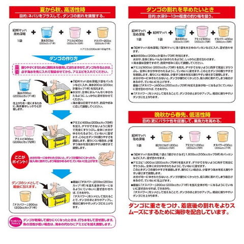 深場対応の白いダンゴエサ。深場を攻めるための重さを備えた紀州・ダンゴ釣り用ベースエサ。微粉末なので、少量の海水でまとまり、非常に握りやすく着底後の崩壊がスムーズ。光の届きにくい海底で目立つ白ダンゴは沈下途中での濁りを抑え、一点集中でチヌを寄せます。適応水深目安8~20m。 ★ 内容量:5000g