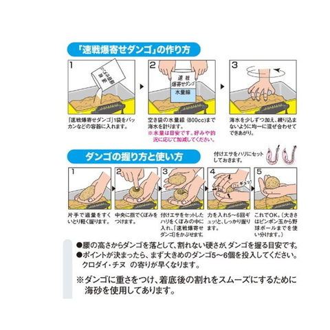 重く沈下スピードが速い。集魚力、握りやすさ、投げやすさに加え、重さがあるので、水深のあるポイントや、潮流の速い場所でも素早く沈下し、着底までのストレスを軽減。集魚成分には「MP酵母」をはじめ、全7種類もの成分を配合。高速沈下と強力集魚が、素早い勝負を可能にします。 ★ 内容量:4000g
