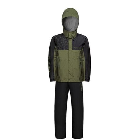 雨・風を防ぎ釣りを快適にする透湿性に優れたスタンダードレインスーツ。優れた透湿性・防風性・耐水性を兼ね備えた3層レイヤー生地で、雨の日でも快適に釣りができるスタンダードレインスーツです。生地は透湿性があるため(透湿度20,000g/m2/24hr)、汗による蒸れを軽減し、べたつきを抑え快適な着心地が持続します。耐水圧は20,000mmとなっており、雨の中の釣りにもオススメです。ミドル生地の透湿防水フィルムには防風性があり、外部からの冷たい空気の侵入を防ぎます。腕の上げ下げをスムーズに行える立体設計により、釣りの動作を妨げず裾のずり上りを軽減しました。ワンタッチでフードの調整が可能なアジャスター付き。袖口、ジャケット裾、ズボンの裾にも絞り用のドローコードがついており、裾幅の調整が可能です。裾を体にフィットさせることで雨や風の侵入を軽減します。フロントファスナーには小型のホイッスルが付属し、緊急時にも役立ちます。
