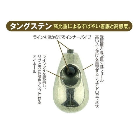 新たなロックフィッシュカテゴリーを拓いたビフテキ。その核とも言えるビーンズのダングステンバージョン。使い方はビーンズと同じ。ダングステン素材の高比重特性がもたらす<「すばやい着底」「高度感」「小さなシルエット」「抜群の遠投力」。よりポイントをタイトに、よりアグレッシブに攻めることができる。