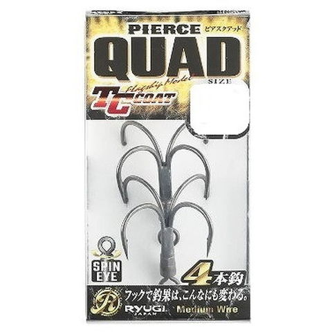 正解と思えるタイミング、タックル、ルアー、アクション・・・全てを揃えて狙う魚に挑んでも、その魚を獲る為に拭きれない"運"の要素。「しっかりと喰わせたのに、掛からなかった。」こんな経験をし、涙をのんだアングラーも多いはず。掛からなければ始まらない。とにかくバイトを掛け、チャンスメイクをしてくれるフックが欲しい。正解と思えるタイミング、タックル、ルアー、アクション・・・全てを揃えて狙う魚に挑んでも、その魚を獲る為に拭きれない"運"の要素。「しっかりと喰わせたのに、掛からなかった。」こんな経験をし、涙をのんだアングラーも多いはず。掛からなければ始まらない。とにかくバイトを掛け、チャンスメイクをしてくれるフックが欲しい。その構造上、バイト時に魚体に対してフックポイントが複数本接触する可能性が高まる為、魚体を絡め取る可能性が向上する。絡め取った魚体は、魚の闘争に合わせて回転追従するスピンアイでバレを抑制。"運"に泣かない為の、掛け重視という選択肢。ピアスクアッド。
