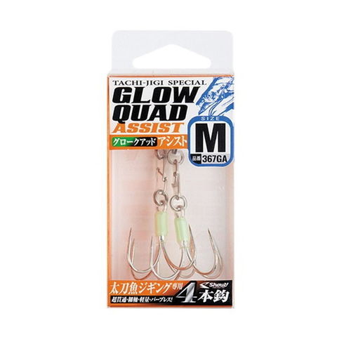 4本鈎の「クアッドフック」を使ったタチウオ専用設計アシスト。夜光バイトマーカーバージョン。サイズ:M