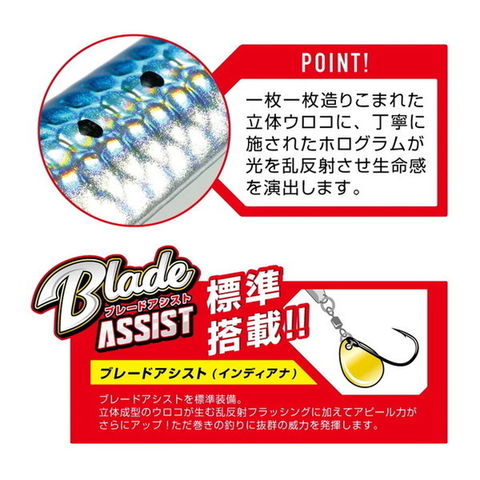 近年流行の巻きのジギング、『ブレードジギング』で絶大な実績を誇るマキスペ。使いやすさ抜群のイワシジグに、インディアナブレードが標準搭載されており巻くだけ簡単にフィッシュイーターに強烈アピールします。