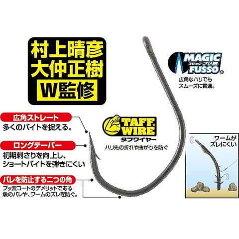 “掛け” と “バレにくさ”の融合! ネコリグ&ワッキーリグ専用設計! 天才バス を捉える ● ショートバイトを掛ける ● 即合わせでもすっぽ抜けない ● フッ素でもバレにくい