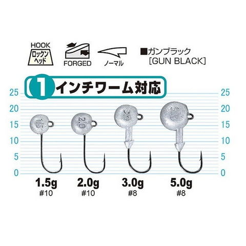 ①ワームサイズ測定メジャー付き②ボトムエリアのロックフィッシュ専用設計。・フックは掛かり優先の細軸仕様。・ヘッドは、ボトムで倒れずしっかりと安定する形状。根掛かり回避、コンタクトノーズ。ボトムで倒れにくく指で持ちやすいヘッド形状。リーダーを通しやすいアイ。極限まで細いキーパー。掛かり優先!細め激鋭フック。