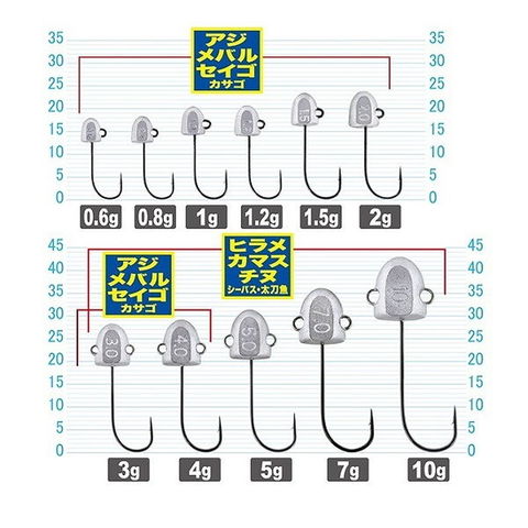 これだけで全て出来る!「出来ない事は何もない」湾岸ライトSW最強ヘッド!●強くしゃくればダートするヘキサゴン断面ヘッド。●タダ巻きでは素直な直進リトリーブ。●ウェイト刻印入り●アイ形状は大き目のU型。スナップらくらく。●3g以上は上下アイを搭載!フック向き上下逆転可能!サポートフック装着も可能。●指で持ちやすいフラットサイド。●1g以下のフックは中軸設定、良型アジ・メバルにばっちり対応。2g以上は細軸設定。●ワームを刺しやすい!ストレートポイント。